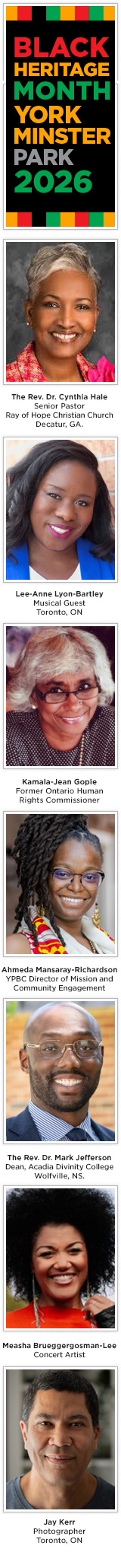 We are honored to host Rev. Dr. Cynthia Hale, Senior Pastor of Ray of Hope Christian Church in Decatur, GA, a visionary servant-leader whose faithful ministry has inspired generations and strengthened the Church worldwide. Dr. Hale will bring her powerful message to Yorkminster Park.